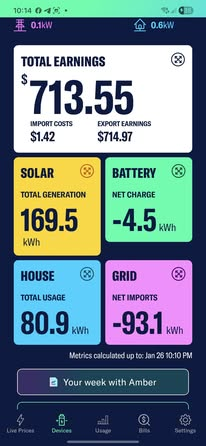 Last year, a third of Amber SmartShift users earned more than they paid for energy. Net negative bills, with credits they could cash out at any time. And 74% of Amber battery customers had at least one negative bill during the year. That's not a fluke. It's what happens when your battery has access to the real market and the smarts to make the most of it.