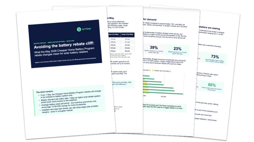Demand will soften, average battery sizes will likely shrink, and the ROI conversation becomes more important than ever. We've put together a full industry briefing for retailers and installers covering what's changing, what it means for your customers, and how Amber changes the numbers.