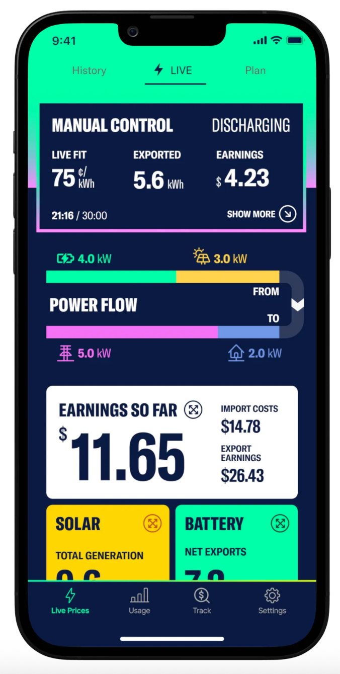 In a traditional VPP, you typically can't see real-time data about what your battery's doing or why. Most traditional VPP apps show basic charge levels and maybe monthly summaries, but detailed pricing information and export decisions remain hidden. Many traditional VPPs also have contract requirements that can make it harder to switch if you're not happy with the service.
